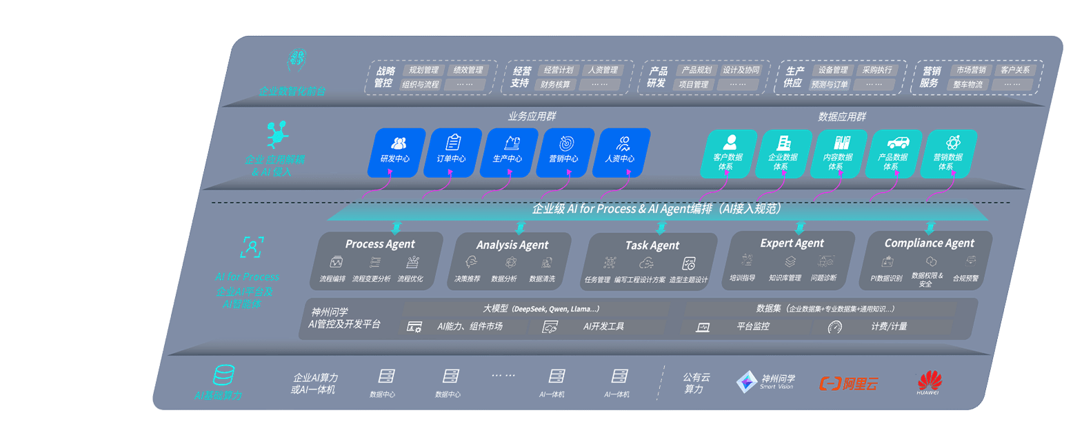 端到端的一站式AI工作空间深度融合了从企业战略规划到日常经营的全流程业务板块,,定向解决车企内部领域多、、、、部门多、、、链条长、、、场景碎片化等难题,,,支持车企快速构建以AI为核心的生产力写作体系,,,,实现任务执行与AI能力的无缝集成与交互